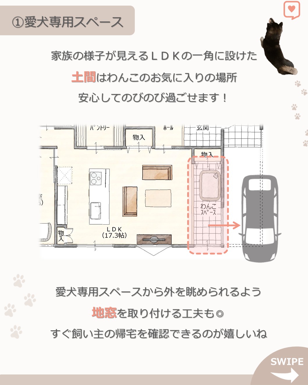今日はパナソニックテクノストラクチャーでご提案する『愛犬と暮らす家』の間取りポイント3選紹介します。